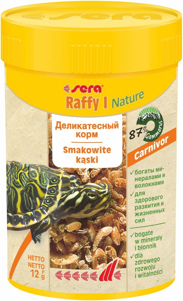 Verwöhnen Sie Ihre Wasserschildkröten und kleinen Plesiosaurier mit Sera Raffy I , einem nährstoffreichen Reptilienfutter, das ihre natürliche Ernährung perfekt nachahmt. Hergestellt aus natürlichem getrocknetem Gammarus, kleinen Fischen und Krill, liefert diese köstliche Mischung optimale Proteine, Omega-Fettsäuren, Carotinoide, Mineralien und verdauungsfördernde Ballaststoffe – alles ohne künstliche Farb- oder Konservierungsstoffe.