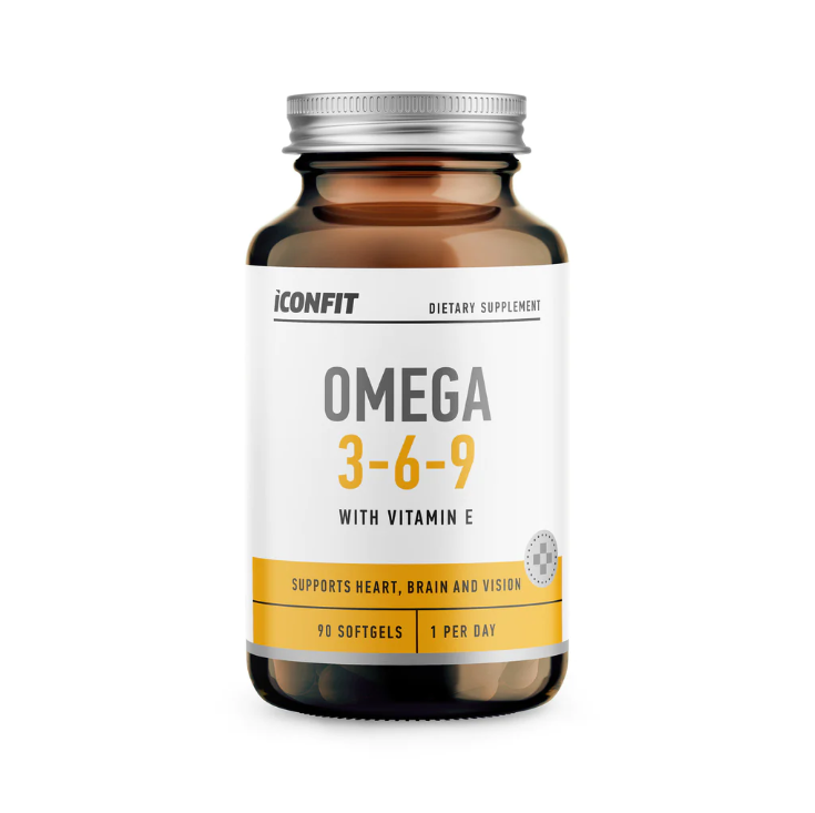 ICONFIT Omega 3-6-9 is a dietary supplement providing a combination of omega-3, omega-6, and omega-9 fatty acids from fish oil, linseed oil, and sunflower oil, with added vitamin E. Designed to complement a balanced diet, this formula offers a convenient way to include essential nutrients in your daily routine.