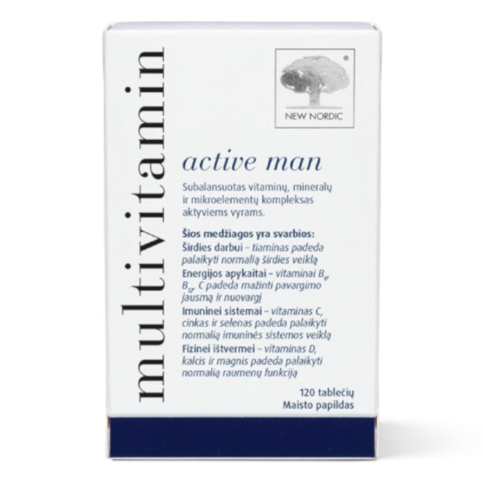 New Nordic Multivitamin Active Man is a daily food supplement formulated for adult men. It combines essential vitamins, minerals, and selected plant extracts to complement a varied and balanced diet and support normal body functions as part of a healthy lifestyle.