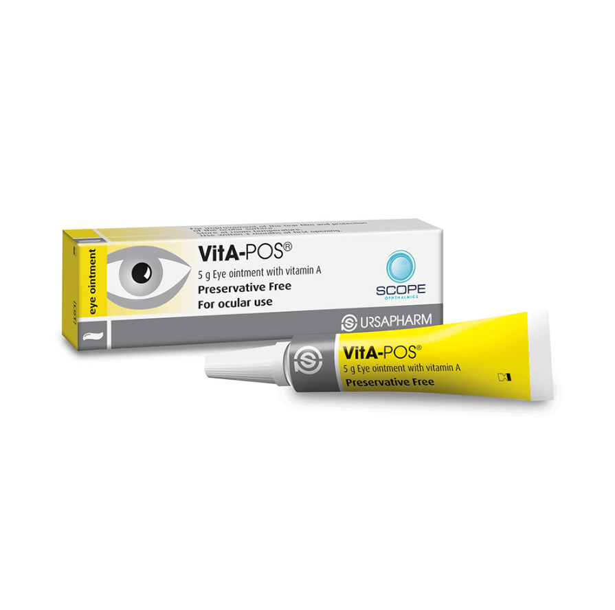 Investissez dans le bien-être de vos yeux avec la pommade oculaire Vita-pos. Sa formulation unique, associée aux bienfaits de la Vitamine A, favorise un film lacrymal plus sain et préserve la surface de vos yeux.