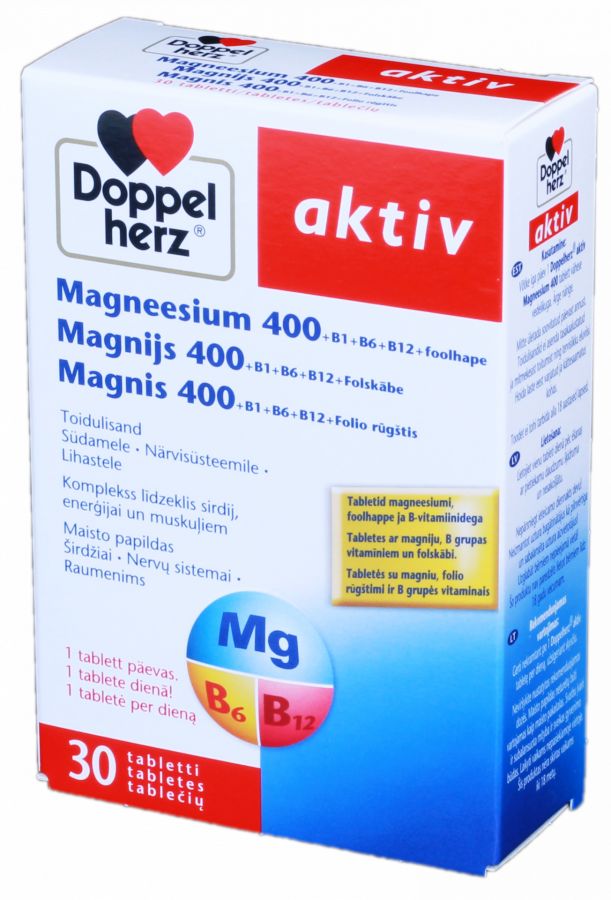 Doppelherz Aktiv au magnésium, acide folique et vitamines B – 30 comprimés